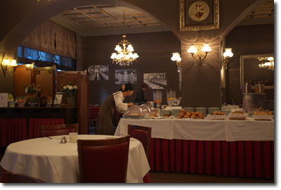 もし公的な道路情報機関があれば,フロントから問い合わせてもらえないだろうか…朝食に下りたときドレミが件の禿フロ氏を見つけて聞きにいきました。