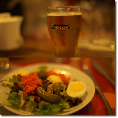何だかよくわからない向かいのレストランで,何だかたいして美味しくない料理をつっつきながらも,ハイネケンと赤ワインをきゅーっとやって,陽気に千鳥足で帰ってくれば,狭くてオンボロな部屋でも黄金の御殿。