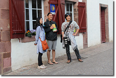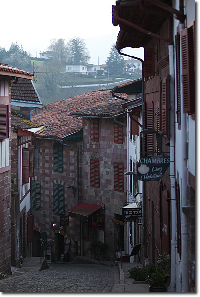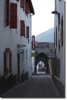 暮れ始めた石畳の町は幻想的な光に包まれ,まるで中世に迷い込んだかのような錯覚に陥ります。ドレミはどこのお店にすいこまれたのか姿が見えません。夢中でシャッターを切っていると,構図に入った男がファインダーの中で手を振っています。ベレー帽はバスクの男の印です。ボクも手を振りながら彼の青い目を見ていたら,バスクにいるという実感が急に突き上げてきて胸がいっぱいになりました。それが伝わったのでしょう,ボクが真っ直ぐ男の方へ歩いてゆくと,彼が大きく両手を広げて,ボクらはいきなりハグをしたのです。
