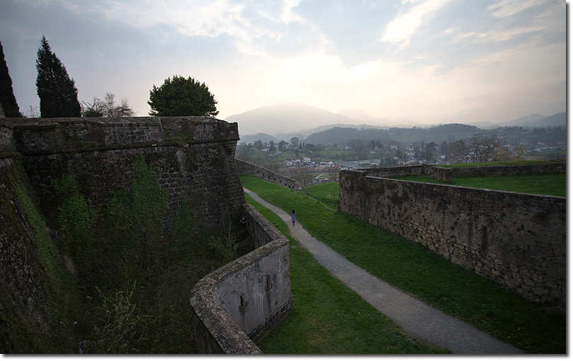サン=ジャン=ピエ=ド=ポルの町が一望できます。ときどき,犬を連れた地元の人や観光客が登ってきてはまた下って行きます。遠くの山が墨絵のように美しくかすんできました。