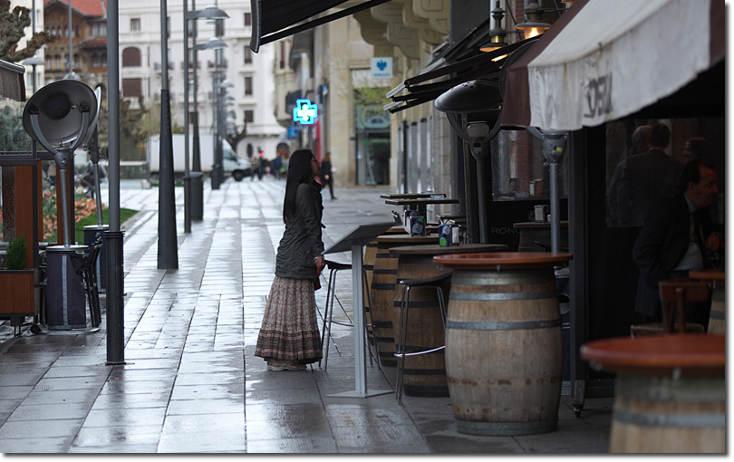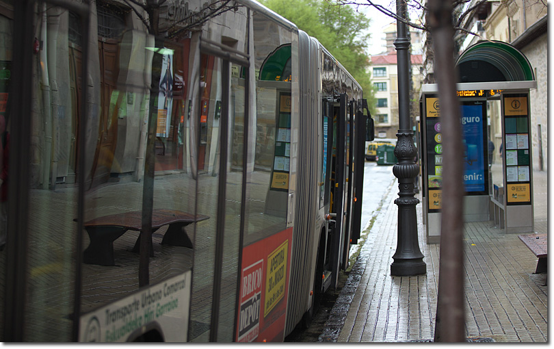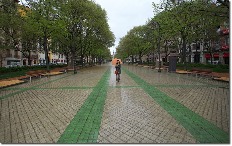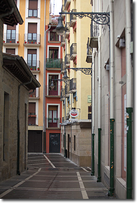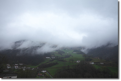 雨はともかく霧がひどいのです。ボクは若いころに自慢の未対策2TGセリカLBで国道141号線を走行中,霧のために視界が数メートルもなくなって,とうとう耕運機に右側から追い越されたという苦い経験を持っています。あのときほどではないにしろ,慣れない外国の山道で霧と雨の中を走り続ける意味がありません。予定を変更して,真っ直ぐにパンプローナの町に下りることにしました。