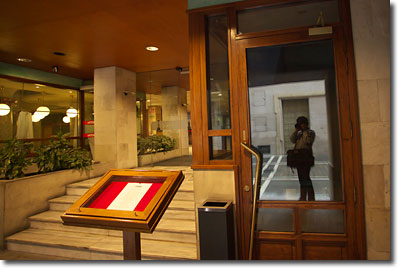 ううー,ここも三つ星だけど高そう。ドレミは臆することなくぴょんぴょんと階段を昇り,フロントに行って値段を聞いてます。あれ?ウインドウの奥から「丸!」のサインを出してます。どうやら交渉成立のようです。