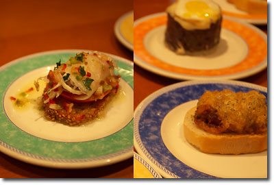 隣席のピンチョス盛り合わせを撮らせてもらいました。通りがかったウエイターが英語で