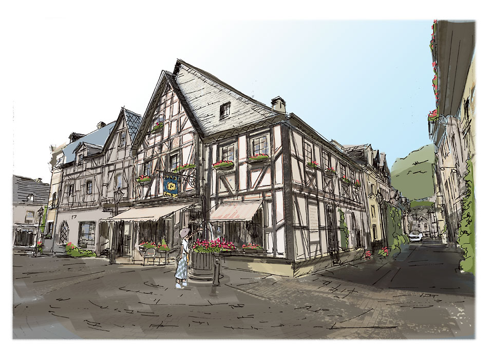 夕食のとき,ボクたちの泊まったホテルのオーナーシェフが,額に縦じわを寄せ,深刻な表情で,テーブルににじり寄りって言うのです.「ご注文の料理ですが,紫キャベツを切らしてしまいました….」…ボクたちはそれを聞いて初めて紫キャベツがつけ合わせたということを知りました.意気投合したシェフは紫キャベツをビーツで代用した料理を作り終えると,ボクたちのテーブルにやって来てビールを飲みはじめました.テラスの横を通りかかった近所のおじさんも招じ入れて盛り上がり,よくわからない宴となりました.