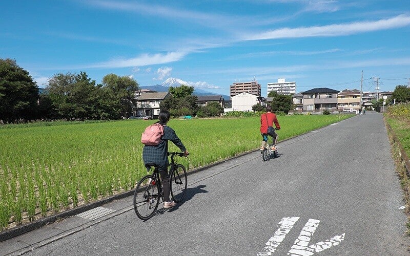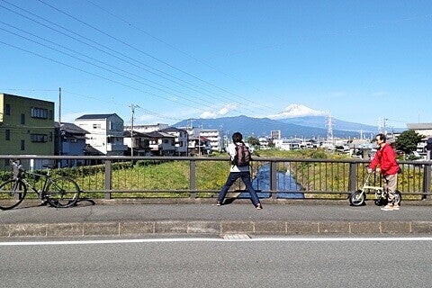 三島人は富士に贅沢すぎる。新雪を戴いた秀麗な峰が秋空に映えても道行く人は一瞥もしない。ボクらのサイクリングは富士の姿を見る度に停まっては写真を撮るものだから遅々として進まない。