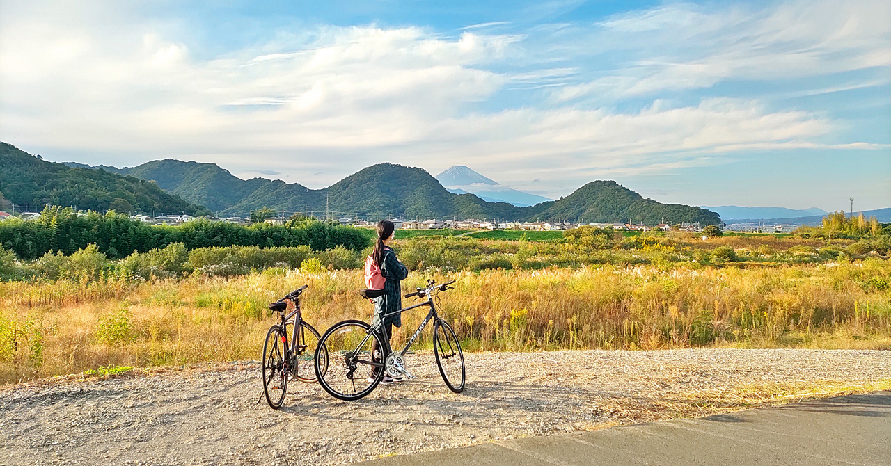北条の里散歩路を狩野川まで出た。富士山に夕映えが始まって美しい。