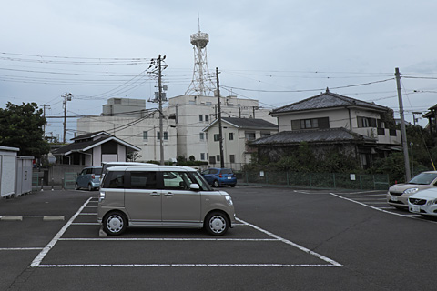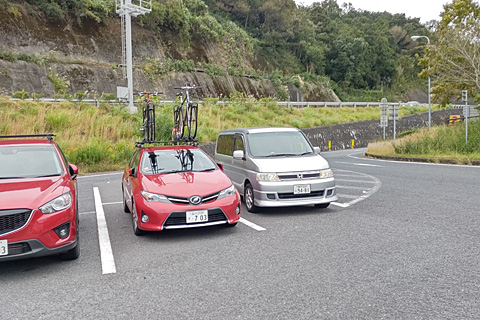 伊東市営大川橋駐車場。驚くほど駐車料金が安いのに係員が二人も詰めていた。今にも降りだしそうな空だが空気は乾燥しているので予定通り自転車を下ろした。