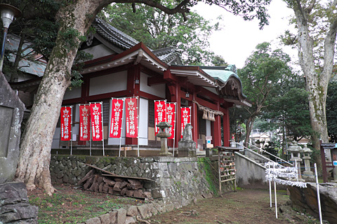 奥にある巨大な樟は国の天然記念物。神社に樟は定番だが,この大クスは桁外れの大きさである。