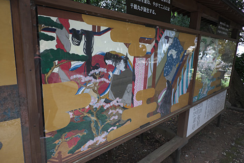美しい絵巻が展示されている。少々顔のデッサンに問題があると思ったら,伊東高校美術部の作とキャプションがあった。高校生だとすればこれはかなりの力作である。八重姫の想いは現代の高校生の心をも動かしたと思われる。