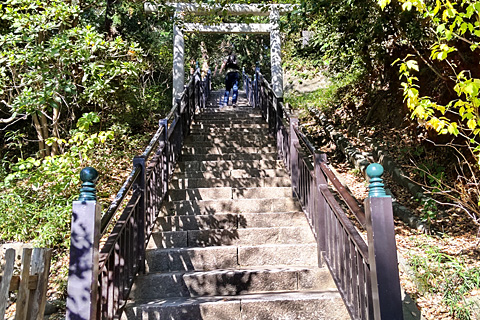 中ほどにコンクリート製のみすぼらしい鳥居が設えられている。