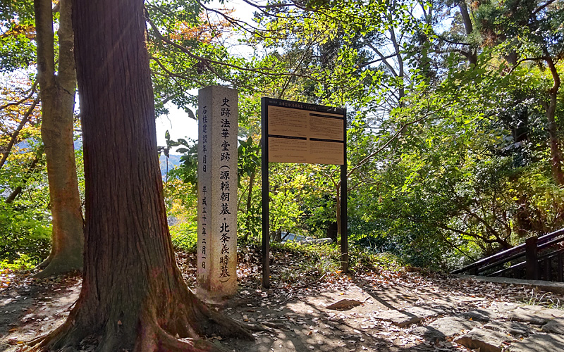中心街に入ったところで三たび北側の山に向かう。法華堂跡である。