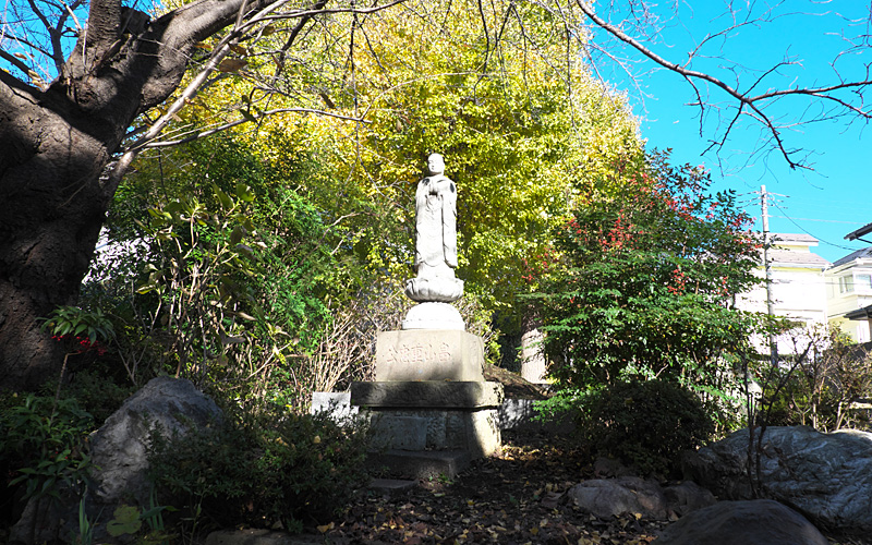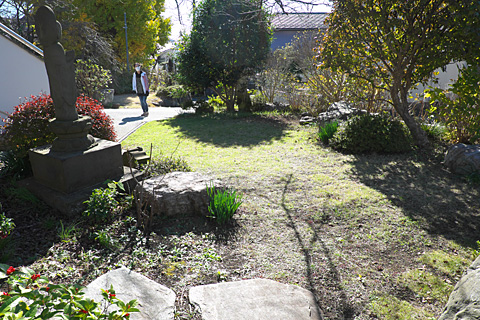 その雑木林の中に重忠公は仏の姿で立っていた。竹箒の男性は林の落ち葉を掃いている。日曜の朝,あきらかにボランティアの行いである。この地には重忠主従をねんごろに葬った「地元の人」の心が800年の時を越えて伝わっている。 ボクらが雑木林にある塚を巡り終わった頃合いを見はからって男性が再び竹箒の手を止めた。