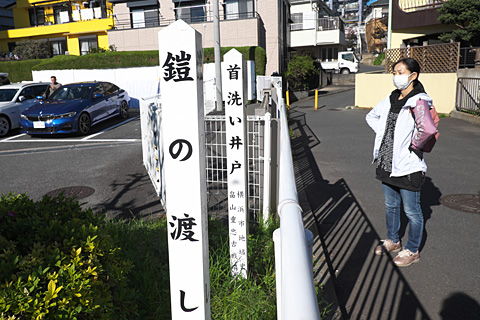 かつて河原に大きな穴があり水が涌いていたと表札にある。さてさて,すぐそばに帷子川の清流がとうとうとあるのになぜ井戸で血を洗ったのだろうか…誰も突っ込む人はいないのでボクもやめておく。鎧の渡しについては後述する。