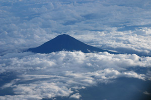 やがて久しぶりに機上の人となったボクたちは眼下に美しい夏色の富士を見てすっかり旅気分になり,ユナイテッドエアライン独自と思われるスターバックスコーヒーの機内サービスをお代わりして「やっぱアメリカの航空会社はいいねえ♪」などと掌を返している。