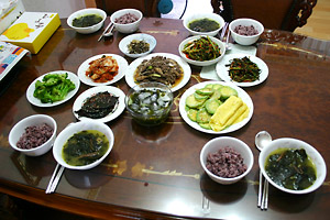ボクはおこわと汁をおかわりして,数種類のキムチとお菜全部に箸を出し,ボク専用に特盛りされたワカメの酢の物を平らげた。