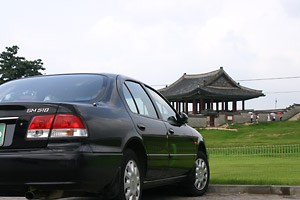 「ゆうべレンタカーでソウルから来て,今朝から城壁を一周してます。お二人もレンタカーですか?」