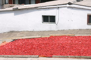 しかしキリがないのでいつの間にか小さな楼は素通りになった。この日の異常な陽気のためだろう。戸外にはほとんど人影を見ない。日光をさえぎるものとてない高台の一本道をひたすら歩く。右手はるか,町をはさんだ向い側に小山がかすみ,その尾根づたいに点々と楼や石壁が見える。あれが帰り道なのだろう。