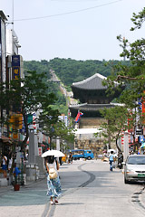 旅館はシステムも部屋も駐車場のビニルすだれもモーテルと変わらなかった。日本なら「ビジネス旅荘」といったところだ。どれも同じようなものだったので,レンガ門に近くて安いところにした。ダブルで25000ウォンは2500円だ。さあ,知らない町に繰り出そう。