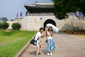 いろいろな旅があっていい。こんなうだるような日に華城を歩いて一周しているのはきっとボクたちだけだろう。彼らもずいぶんと酔狂な日本人夫婦に出会ったと思っているかもしれない。