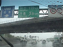 スーオンからは,まずソウルとプサンを結ぶメインの高速道路を走る。プサン方面へ向かいながら,SAでゆっくり地図を確認すればいいだろう。プサンとソウルのハングル文字を復習しながらインターに進入したボクたちは,料金所の先の標識を見て青ざめた。
