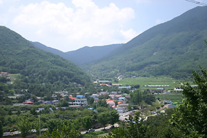 ドレミの買ってきたパンを分けて食べながら,ほぼ朝鮮半島のド真ん中を南下する。日差しは白熱のレーザー光線のように今日もアスファルトに照り付ける。対向車が左をすれ違うことを除けば,日本の例えば北上川あたりの田園風景と酷似していた。国道と並行して建設中の高速道路がきれぎれに視界に入る。高速が開通すると,この風景がどのように変化していくのか,日本中を旅してきたボクには想像に難くない。