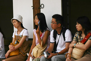 ふだん,ボクが旗の後ろについて歩くツアーを極端に嫌うので,めったにこういう機会がないけれど,もともと彼女は講義や講演を聞くのが好きなのだ。その様子を見ていると,英語の看板を探して読んだり,行く先を地図で調べたり,はては今夜の宿の心配をしたりしながら見物するのとちがって,ただ,あとをついてまわるのも,たまにはよいものだと思ったりもする。