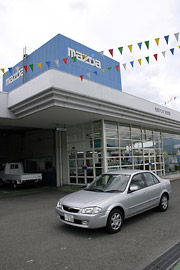 線路沿いに10分ほど歩いて踏み切りを渡ると教えられたマツダのディーラーはすぐ近くだった。レンタカーもやっているはずだがひと気がなく静まり返っている。