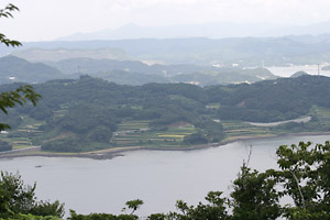 きらびやかな軍容を乗せた松浦水軍がこの海を埋めつくす光景を,ボクは梶谷城跡の高台にあるベンチで熱く語った。退屈そうに聞いているのはドレミと海風だけだ。蝉時雨の炎暑の中を石垣以外何もない古城跡に訪ねてくる人はいない。