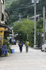 折しもお祭りの日らしく浴衣姿の町の人が港の広場に向かって三々五々に歩いてゆく。