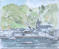 天草といえば大江天主堂が有名だ,絵を描いたり写真を撮ったりするなら断然崎津がおすすめである。バイパスが町外れを抜けているので崎津の町並みは以前と少しも変わらなかった。