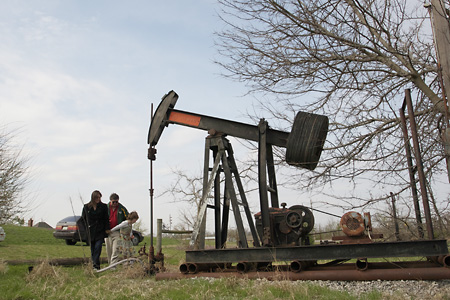 彼らがボクたちに見せようとしたのはオイルウェルという石油掘りの機械だ。空き地に放置されている。