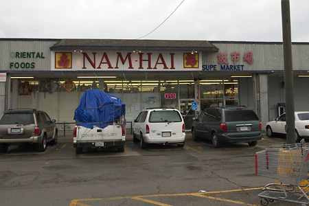 続いて郊外にある韓国食材の店に行った。日本の食材や菓子類も結構ある。野菜売り場でゴボウを見つけた。中国から空輸されたのだろう,色も香りもいい。これは主力食材になりそうだ。他に海苔,豆腐,米酢,冷凍の蓮根などを購入したが豆腐と蓮根は使いものにならなかった。