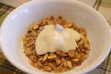 とくにこの手作りグラノーラが美味しい。焼いたオーツ麦を中心にしたシリアルだ。