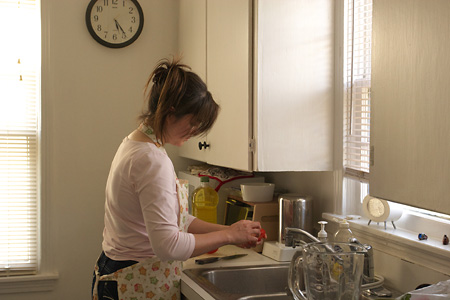 「今日は寒が戻って少し肌寒いからシチューを煮ましょう。」