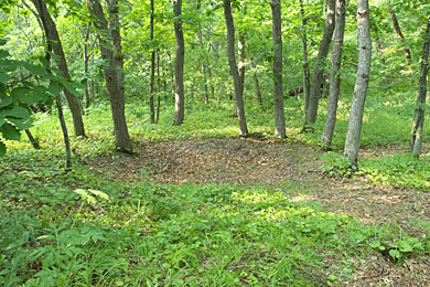 あたり一面の樹間が円形の窪地になっていました。栄浦第二遺跡の真ん中にボクたちは立っているのでした。オホーツク人の住居跡たる窪地は数え切れないほど遠くまで続いています。初めてこれを発見した人の感動はいかばかりだったことでしょう。それにしても,せめて小さな案内板はないのでしょうか。知らない人が迷い込んだら,格好のゴミ捨て場かと思うかも知れません。