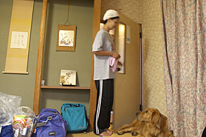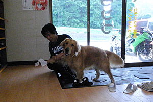 奥から主人が相変わらずのひょうひょうとした雰囲気で現れてホッとした。ここがボクらの北の住処,民宿ランプである。ペット同宿のホテルはめったにないし,専用のペンションは堅苦しくて寛ぐどころか疲れてしまう。