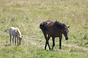 釧路からドライブに来た家族と出会う。森町のときと違って今度はボクから申し出たわけではない。「パパ!ほら,写真,写真」とせき立てられたパパが,車に置き忘れたカメラを取りに行く間に,肝心の馬の群れが遠くに移動し始めたのだ。