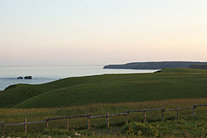木道をゆくと,凪いでいた風が日没を待たすにざわざわと吹き始めた。周囲の複雑な地形のせいだろいか,風向きがくるくると変わり,まるで夏草たちが輪舞(ロンド)するようにうねる。