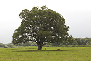 河川敷の一本木を,ある写真家が四季を追って撮り続けたために有名になったそうだ。土手から見下ろすと一面の草原だった。