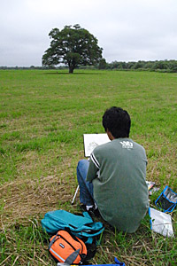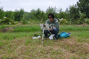 ボクは車から画材を運んできて腰掛けた。