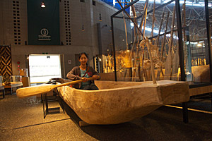 ドレミは彼女らしくユーカラの曲調に興味を持った。展示室の中央にAVコーナーがあって,採録されたユーカラを聴くことができる。モニターには二風谷の美しい映像が流れる。詩の内容に比べ,素朴で穏やかな音楽である。それは豊かな暮らしをしていた民族独特の安らかさであろうか。