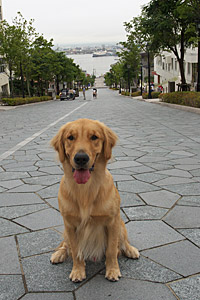 正味わずか40分,意地の戦いが始まった。今度失敗したら立ち直れないかもしれないというプレッシャーから,腕が縮んで線がすくむ。元町公園から真っ直ぐに下った場所なので,歩道を行き交う観光客も多い。調子のよいときには全く気にならない見物人の視線が今は怖い。こんな場所で写生すれば,いつも2,3人のギャラリーを背負っている。だが,今日はタローのおかげで助かった。誰もが下手な絵描きのスケッチよりも,その横でおとなしく待つ犬に興味を示してくれたからだ。