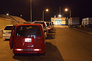 銭湯にもノンビリ浸かったので,フェリーの列はびりになってしまった。