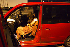 ボクたちが乗船すると,満員の船室にはもう人があふれていた。ボクとドレミは,両側に寝そべっている人たちの足に挟まれた中央部分に,50cmほどの隙間を見つけて,ぴったり抱き合ったまま寝返りもうたずに仮眠した。休まず深夜に東北道を走って,渋滞する前の午前中に都内に入りたかったからだ。