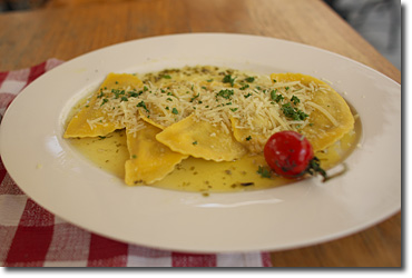 ラビオリを二人でシェアする。