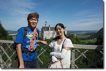 橋の上で日本人のカップルに声をかけて写真の撮りっこをした。ドレミの頭と城がかぶっている。ボクの撮った彼らの写真はたぶん額に入るレベルだろう(笑)