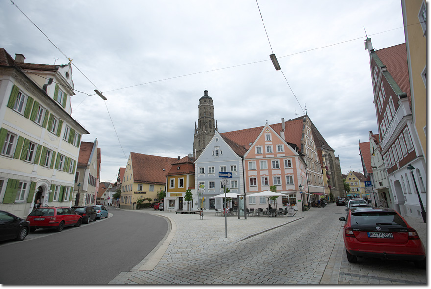 ノイシュバンシュタインのあるフュッセンから今回の旅で最初に訪ねたヴュルツブルクまで南北に約400kmがいわゆるロマンティック街道と呼ばれているルートだ。ロマンティックは漠然と中世のことを指していて,その名の通り中世の佇まいを残す街が多く点在している。中でもネルトリンゲンは人気の街のひとつらしい。