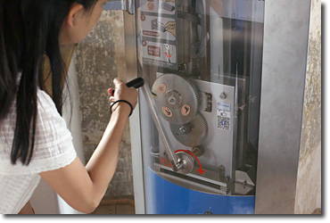1€で50セント硬貨を記念メダルにする機械。