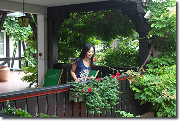 部屋の前のテラスからもつぐみ横丁が見渡せた。