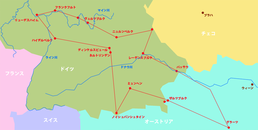ニュルンベルクの橋の上で親しく話した若者は今日も朝からアルバイトに出かけただろう。ゴールデンのミナとお母さんはそろそろオーストリアの旅を終えて家に帰っているかもしれない。国境の村の婦人はしるこサンドを召し上がっただろうか。ミュンヘン郊外でレストランを営む夫婦はもうランチの仕込み中だろう。